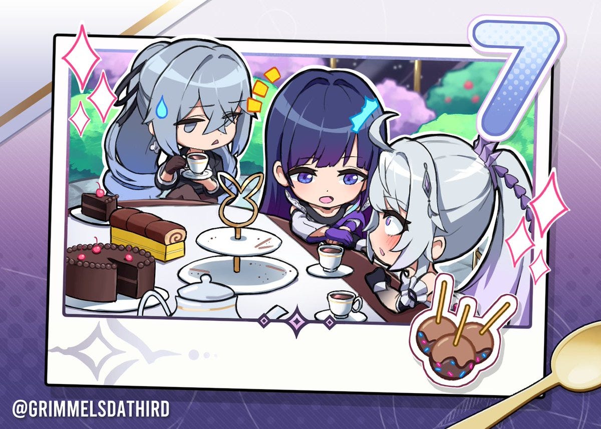 【Part 2 Countdown】 We're 7 days away from Part 2!! Check out this illustration of Bronya, Mei and Kiana by Captain @GrimmelsDaThird!!